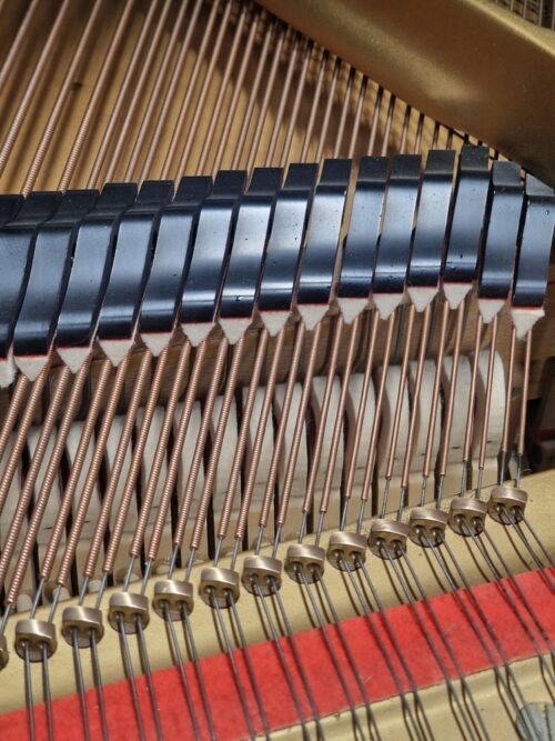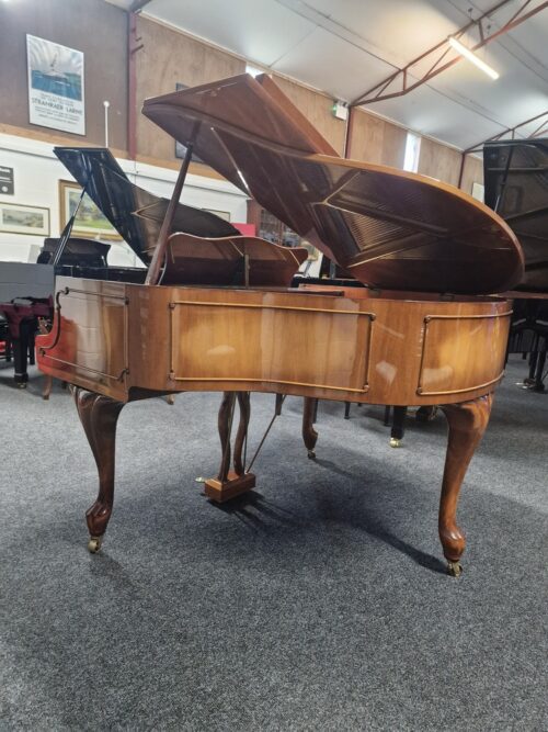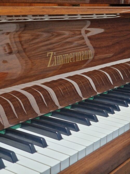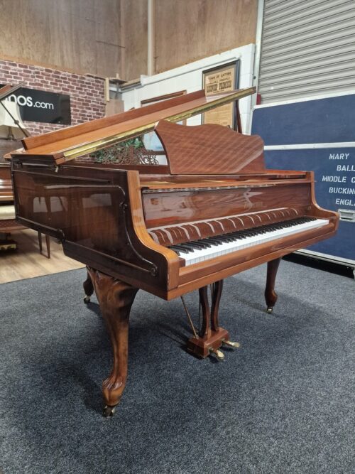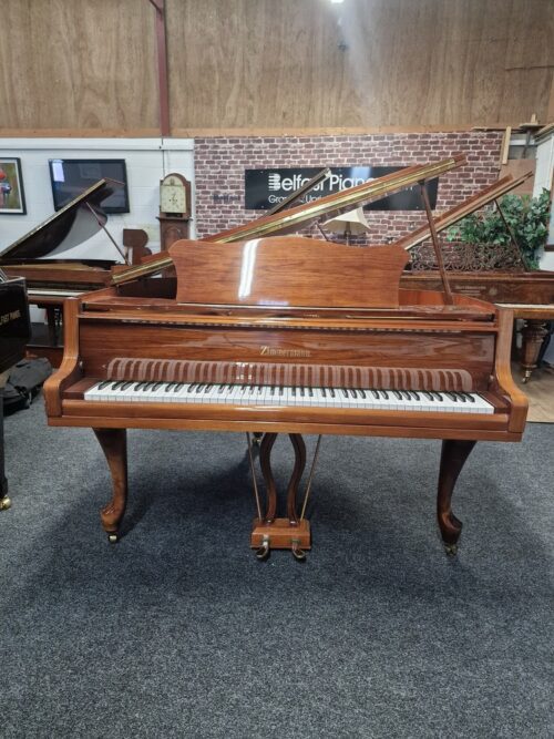 A masterpiece of German piano craftsmanship that embodies a harmonious blend of tradition, innovation, and musical artistry. With a rich history spanning over 150 years, Zimmermann pianos have earned a well-deserved reputation for their exceptional quality and outstanding performance. Stunning baby grand with walnut cabinetry with ornate details, standing in cabriole legs. Responsive keyboard with a balanced & responsive touch, very resonate for its size and consistent tone from bass to treble – each note resonating with clarity, depth, and warmth. Internals are very clean and well looked after throughout its life, with hammers showing little use.